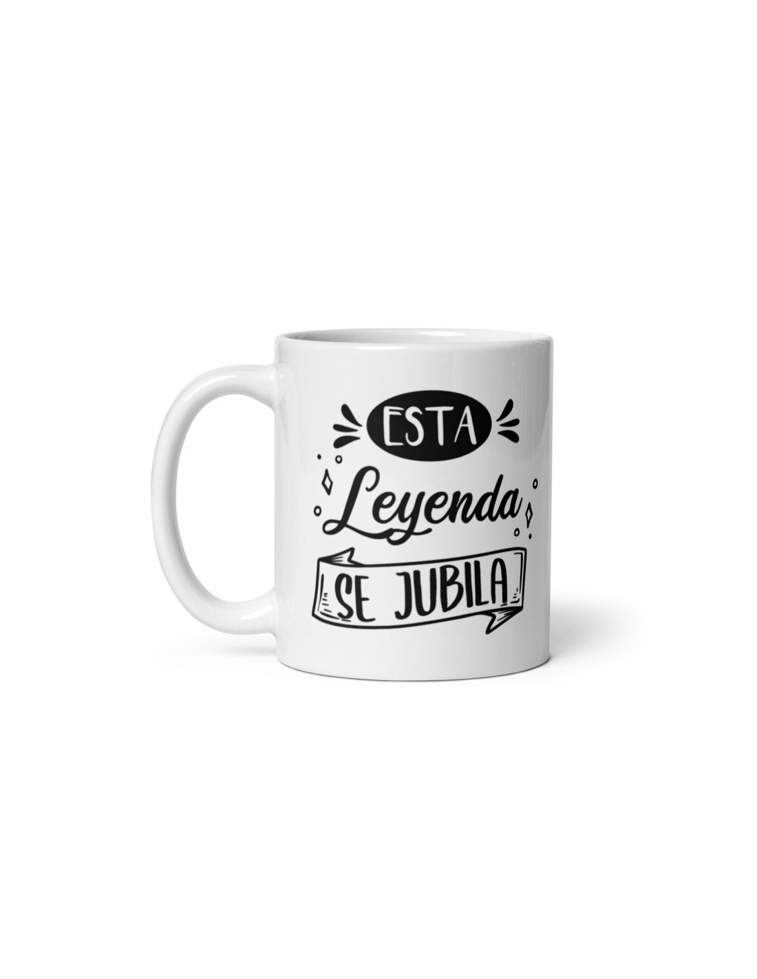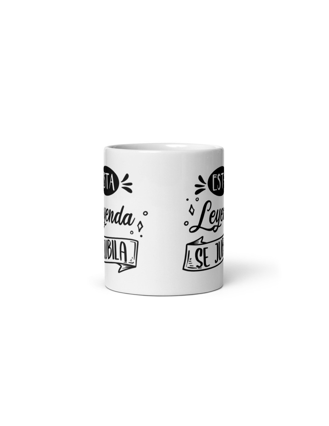 Original taza de porcelana decorada con el mensaje "esta leyenda se jubila".