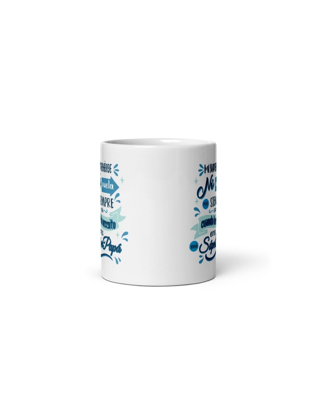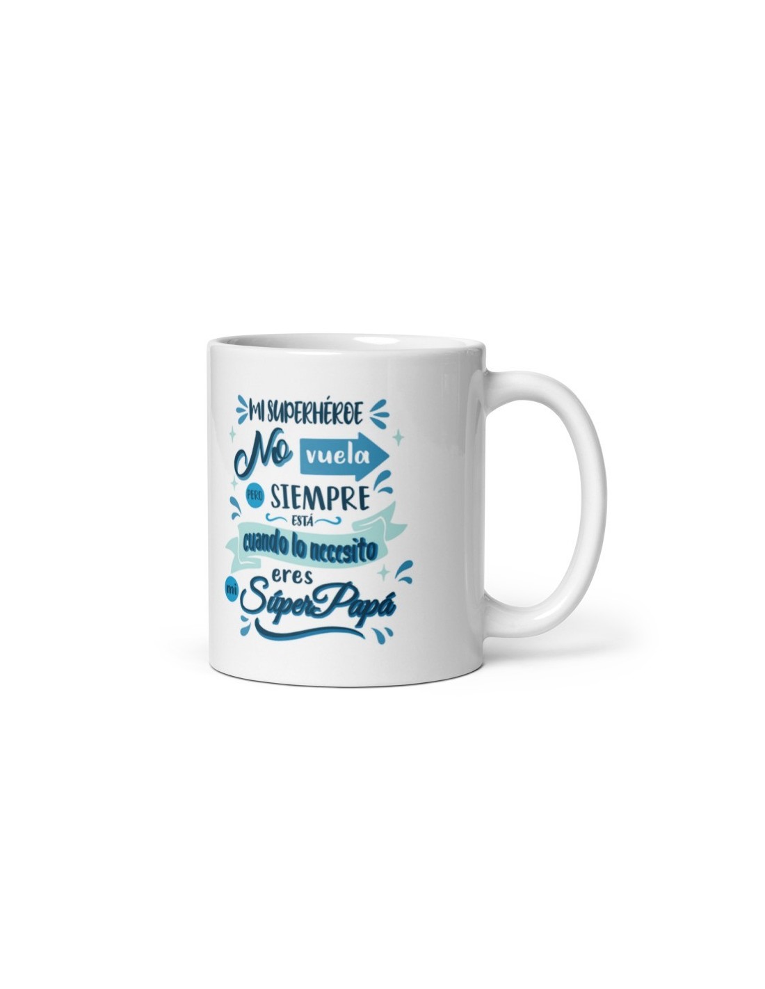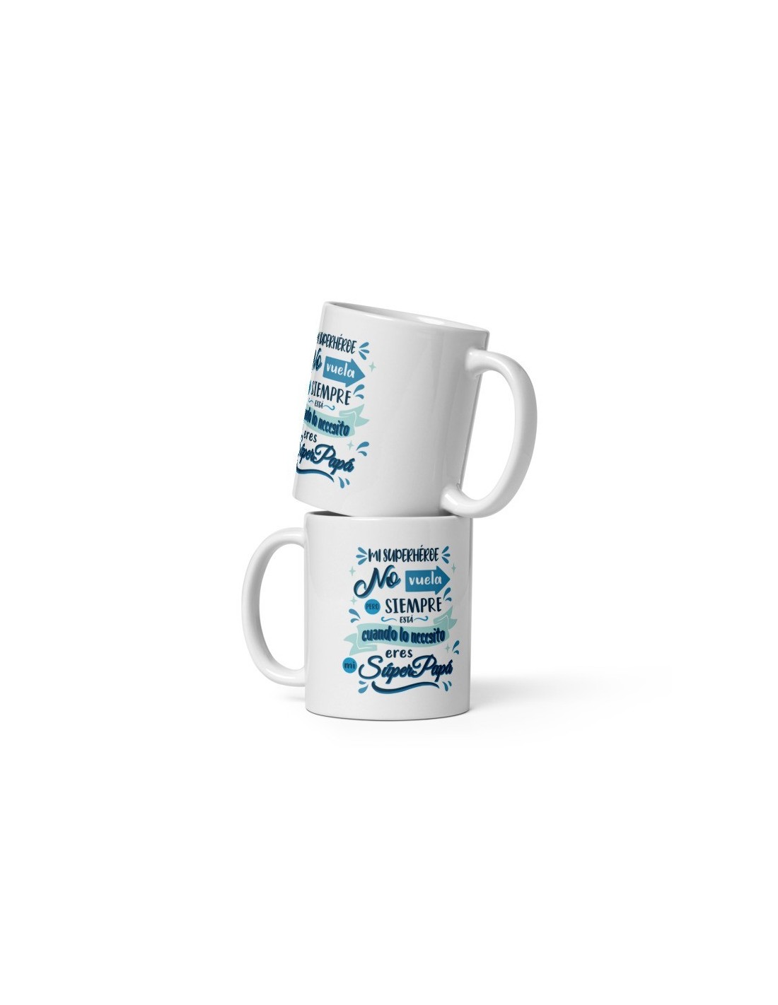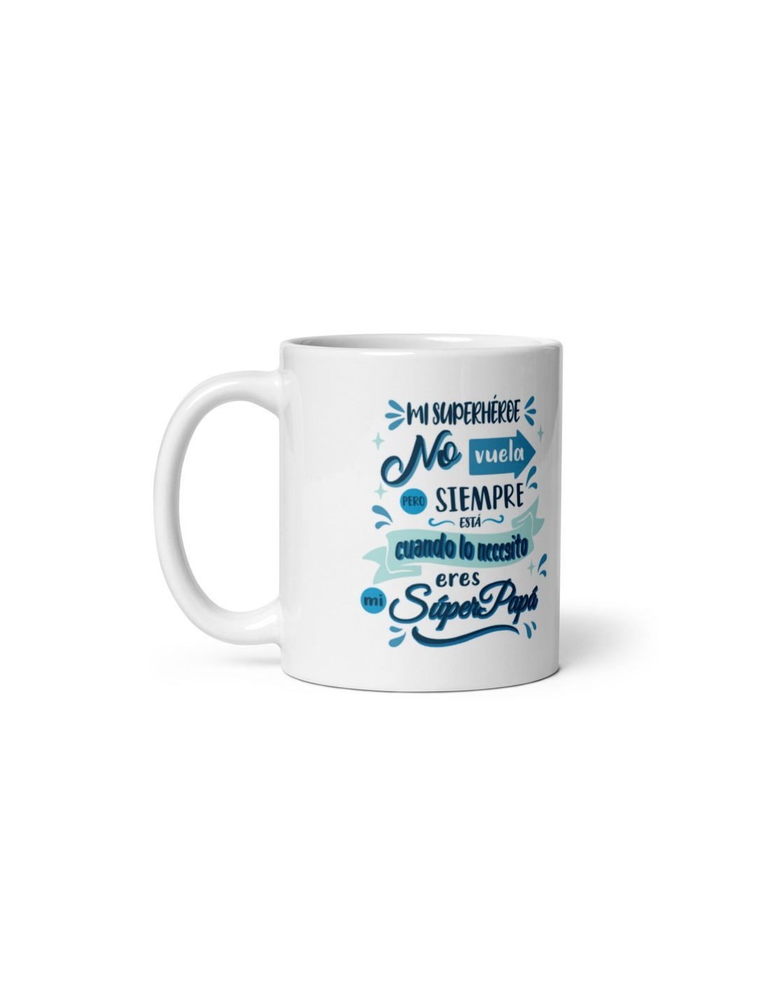 Original taza de porcelana blanca con asa, decorada con mensaje para la "Mi superhéroe no vuela pero siempre está cuando lo necesito, eres mi Súper Papá"".