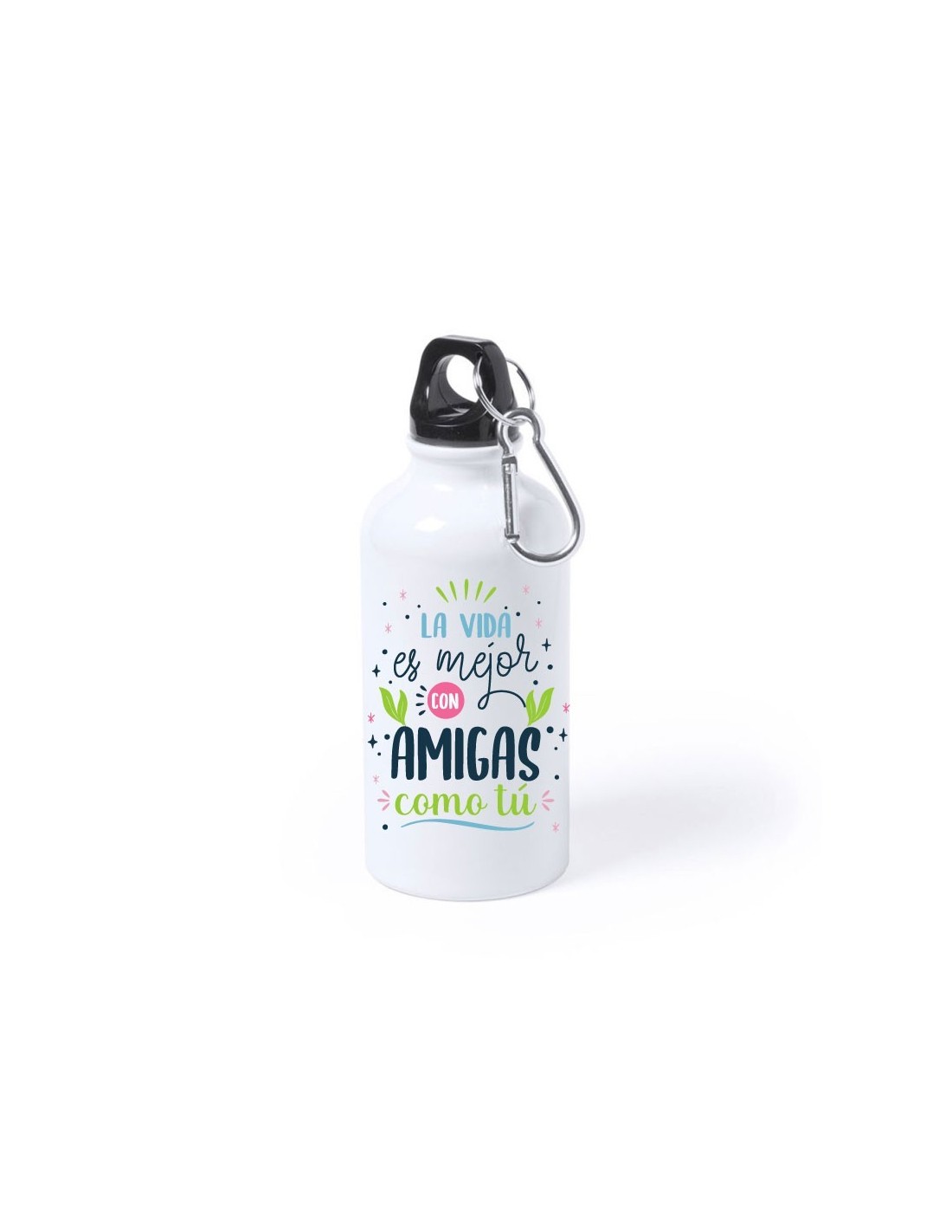 Original botella de aluminio de 400 ml. decorada con el mensaje "la vida es mejor con amigas como tú".