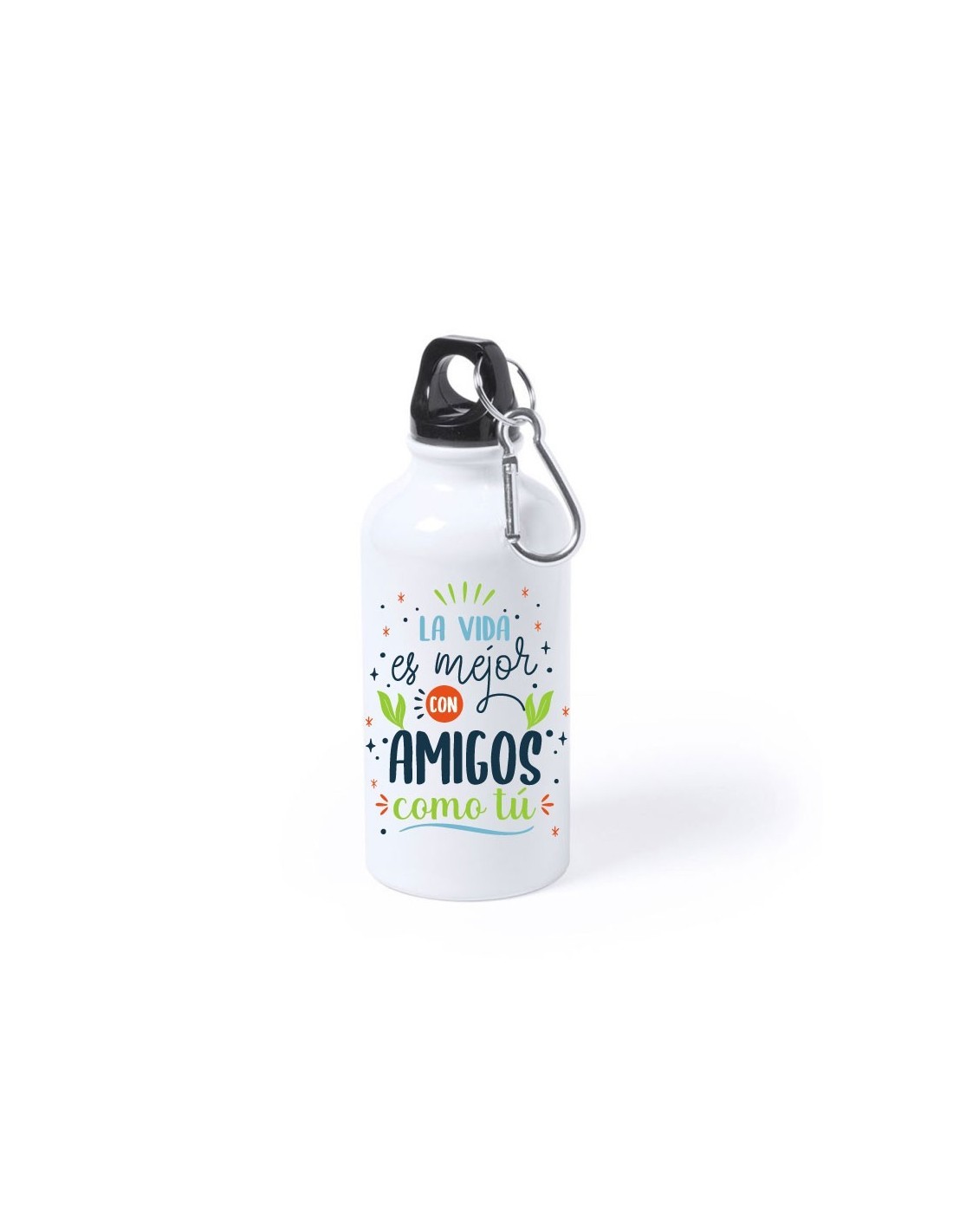 Original botella de aluminio de 400 ml. decorada con el mensaje "la vida es mejor con amigos como tú".