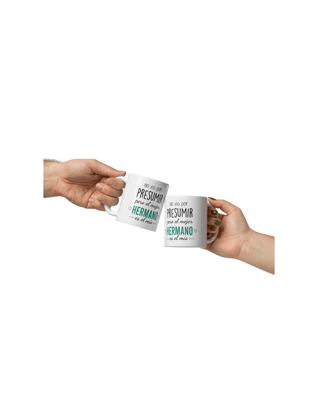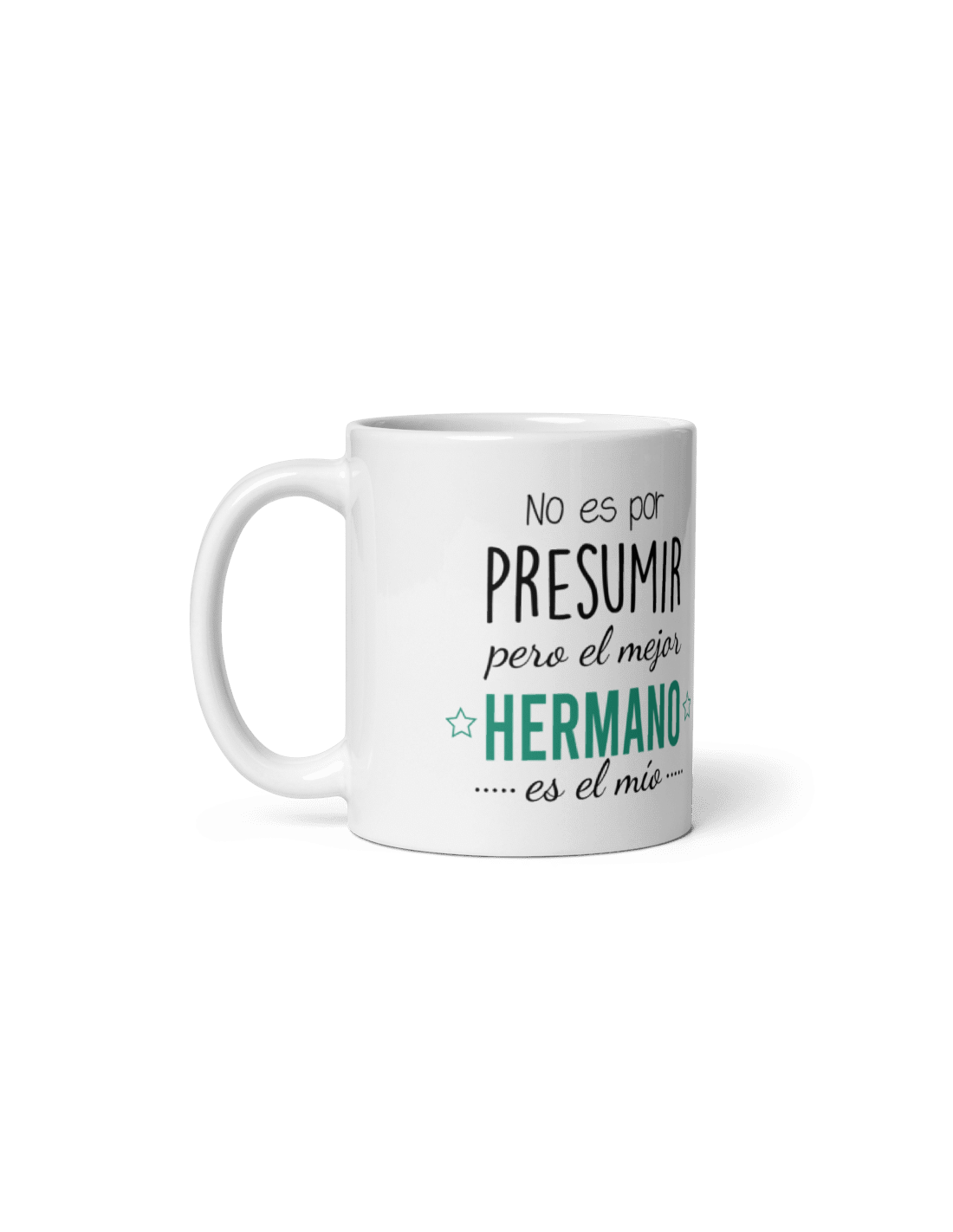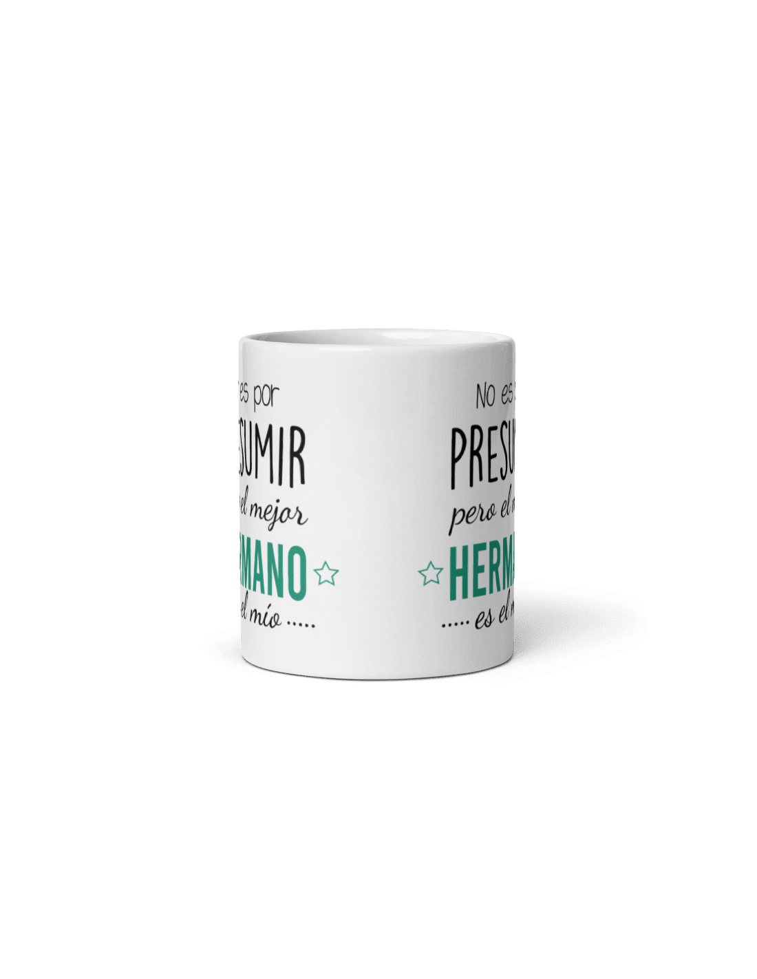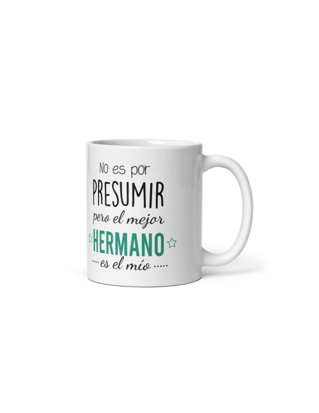 Divertida taza de porcelana decorada con el mensaje "no es por presumir pero el mejor hermano es el mío".