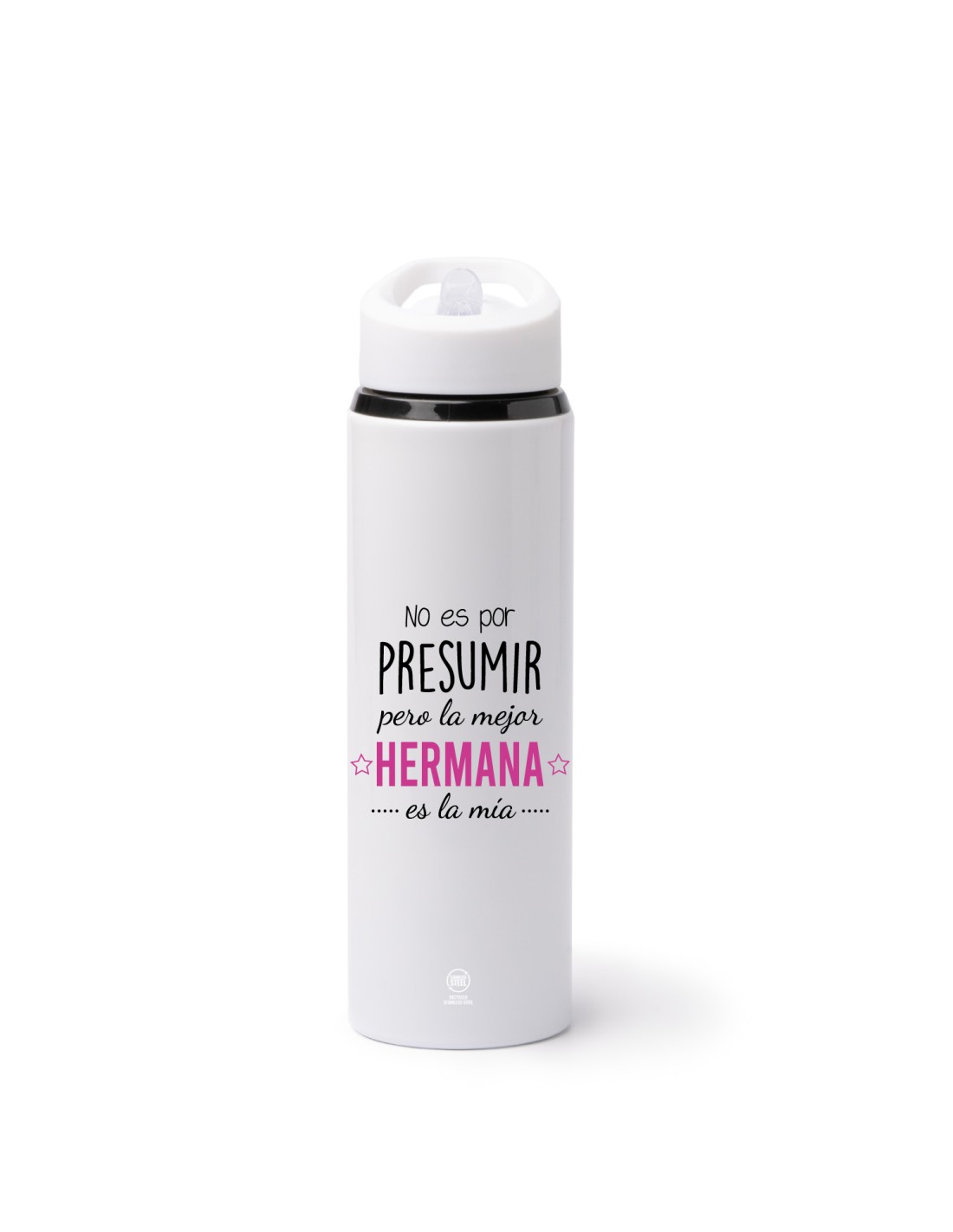 Original botella de acero inoxidable de 700 ml. decorada con el mensaje "no es por presumir pero la mejor hermana es la mía".