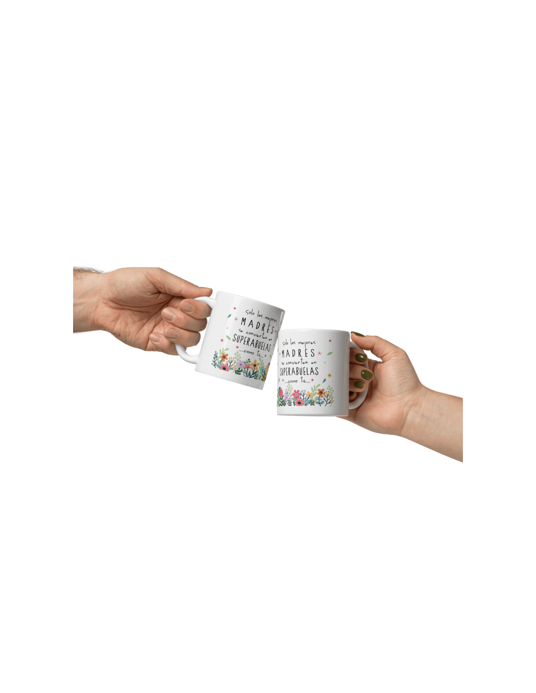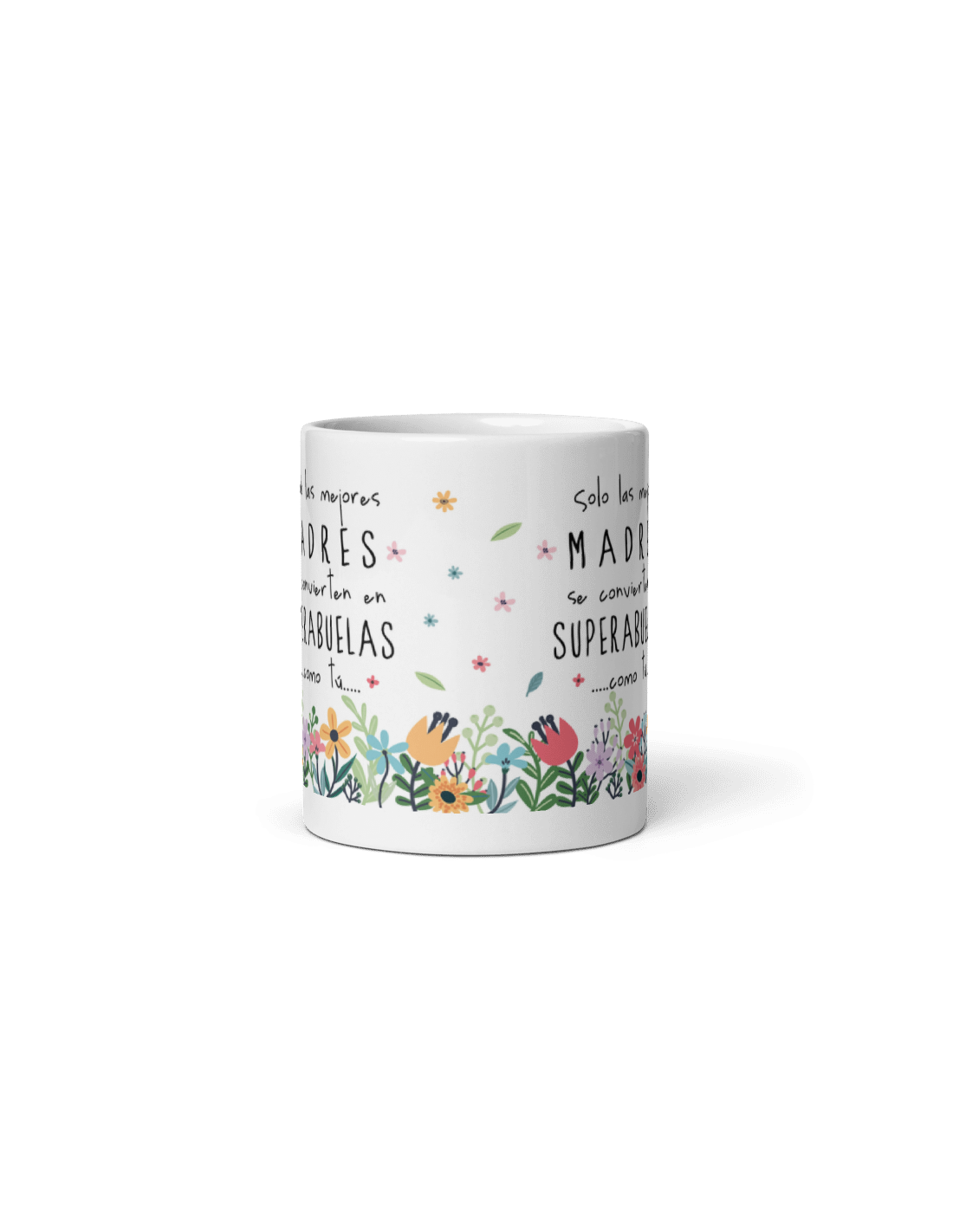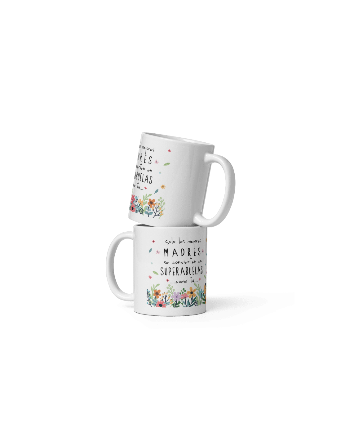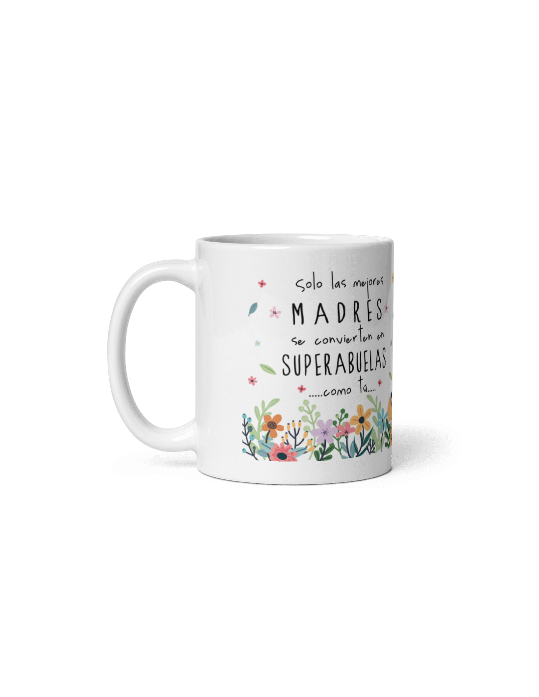 Divertida taza de porcelana decorada con el mensaje "Super taza especial para una abuela genial".