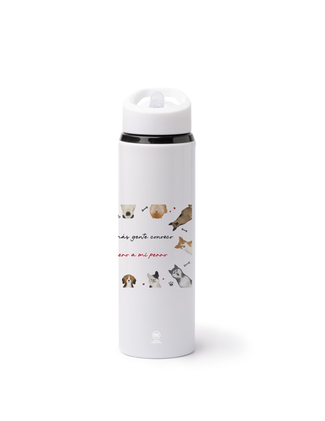 Original botella de acero inoxidable de 700 ml. decorada con el texto "cuanta más gente conozco más quiero a mi perro".