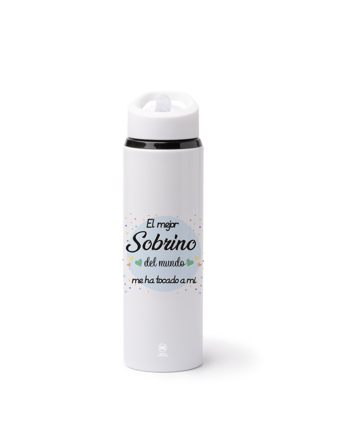 Original botella de acero inoxidable de 700 ml. decorada con el mensaje "el mejor sobrino del mundo me ha tocado a mi".