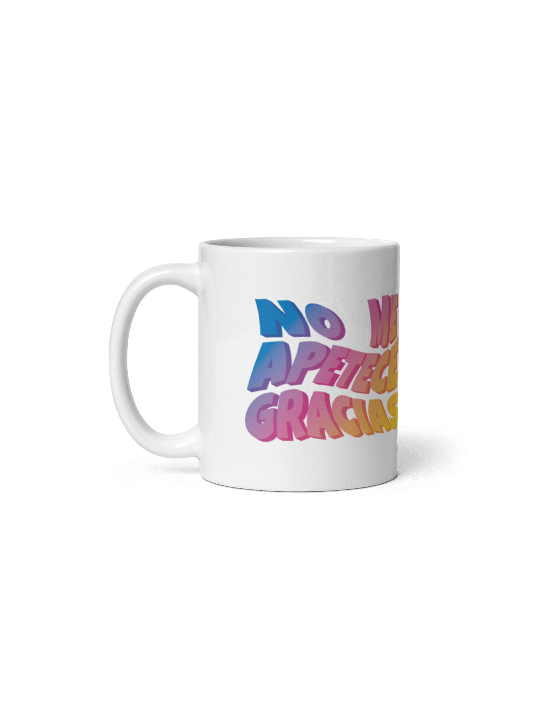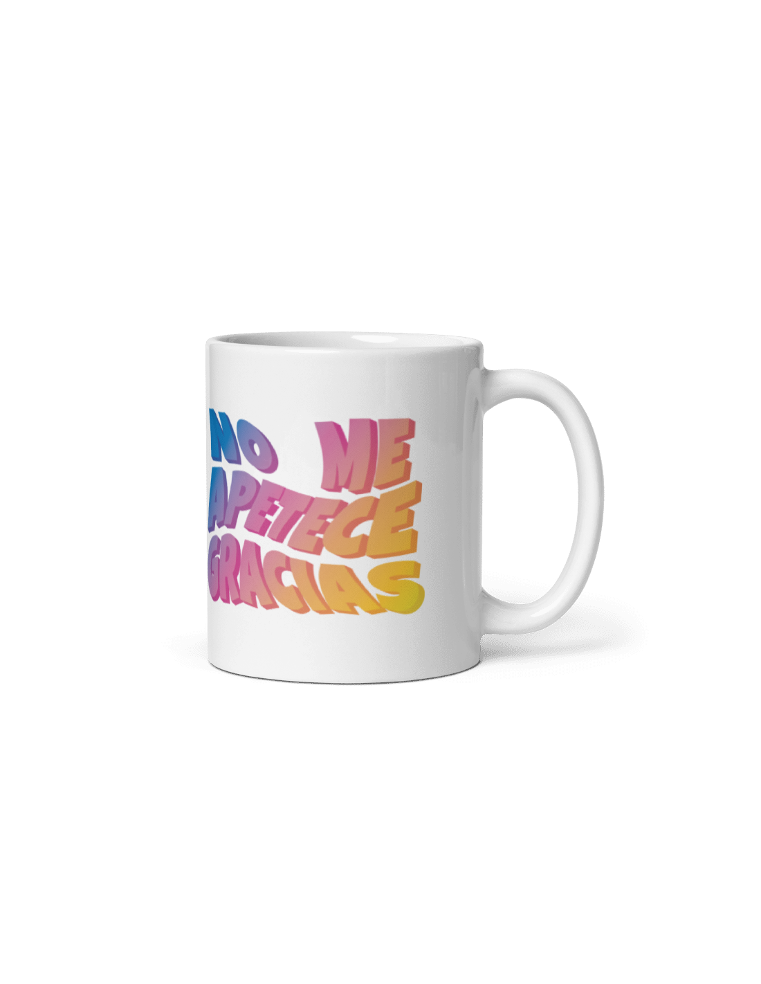 Original y divertida taza de porcelana decorada con el mensaje "No me apetece gracias".