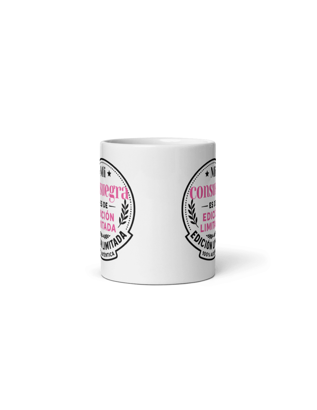 Divertida taza de porcelana decorada con el mensaje "Mi consuegra es de edición limitada".