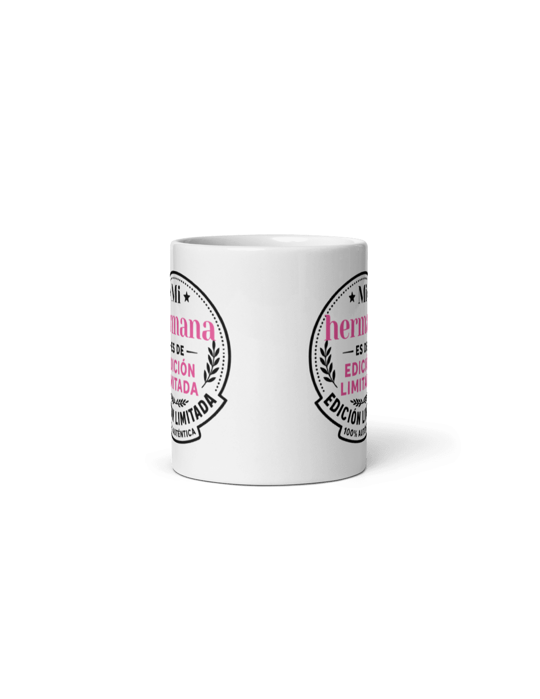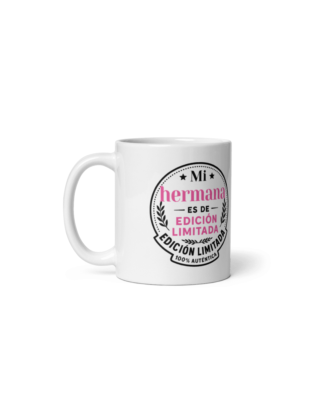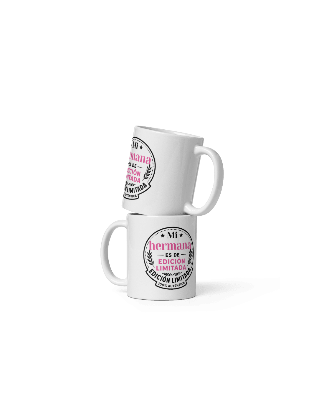 Divertida taza de porcelana decorada con el mensaje "Mi hermana es de edición limitada".