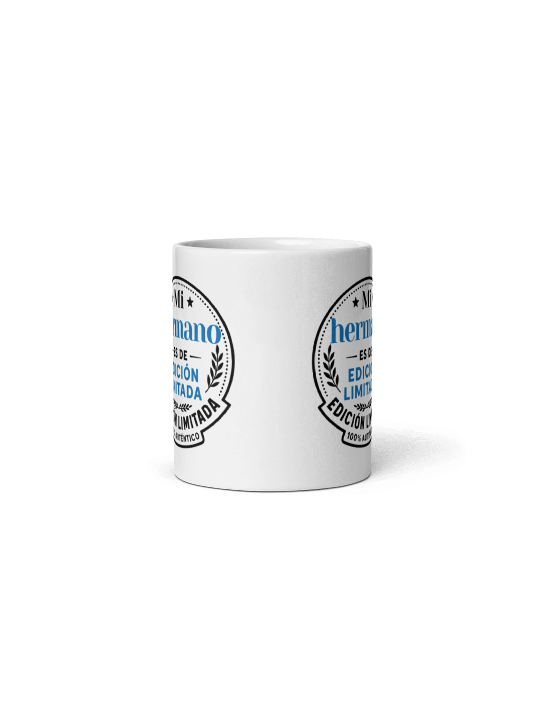 Divertida taza de porcelana decorada con el mensaje "Mi hermano es de edición limitada".
