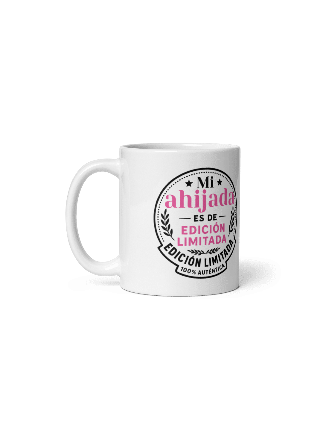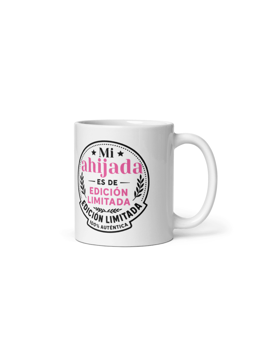 Divertida taza de porcelana decorada con el mensaje "Mi ahijada es de edición limitada".