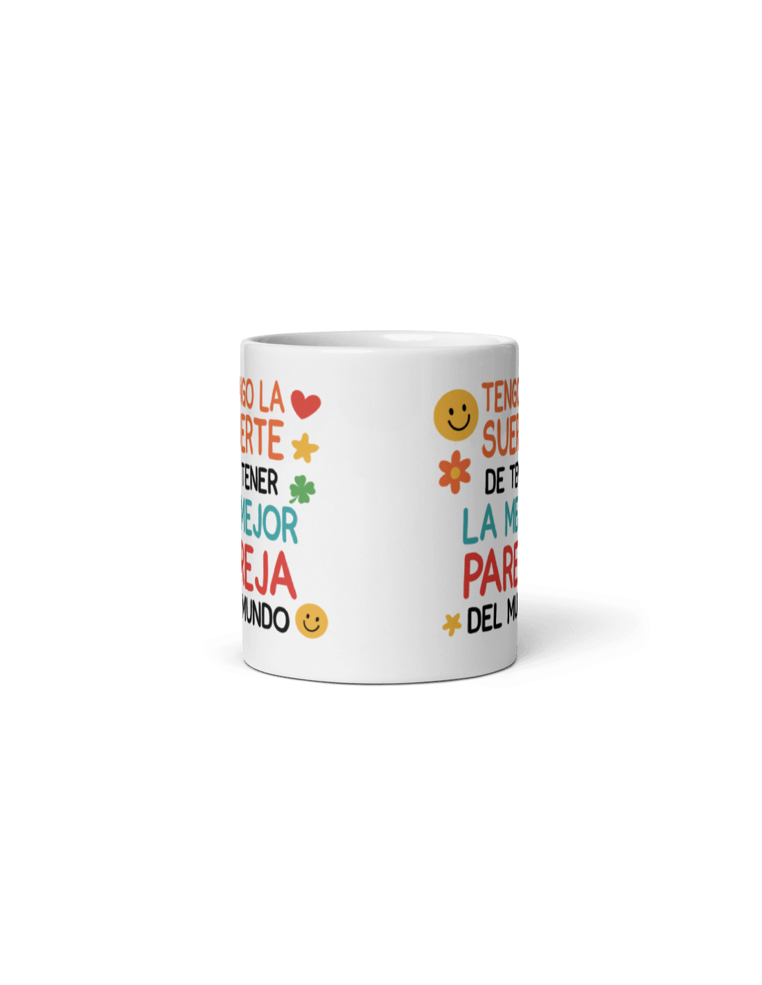 Original taza de porcelana decorada con el mensaje "Tengo la suerte de tener la mejor pareja del mundo".