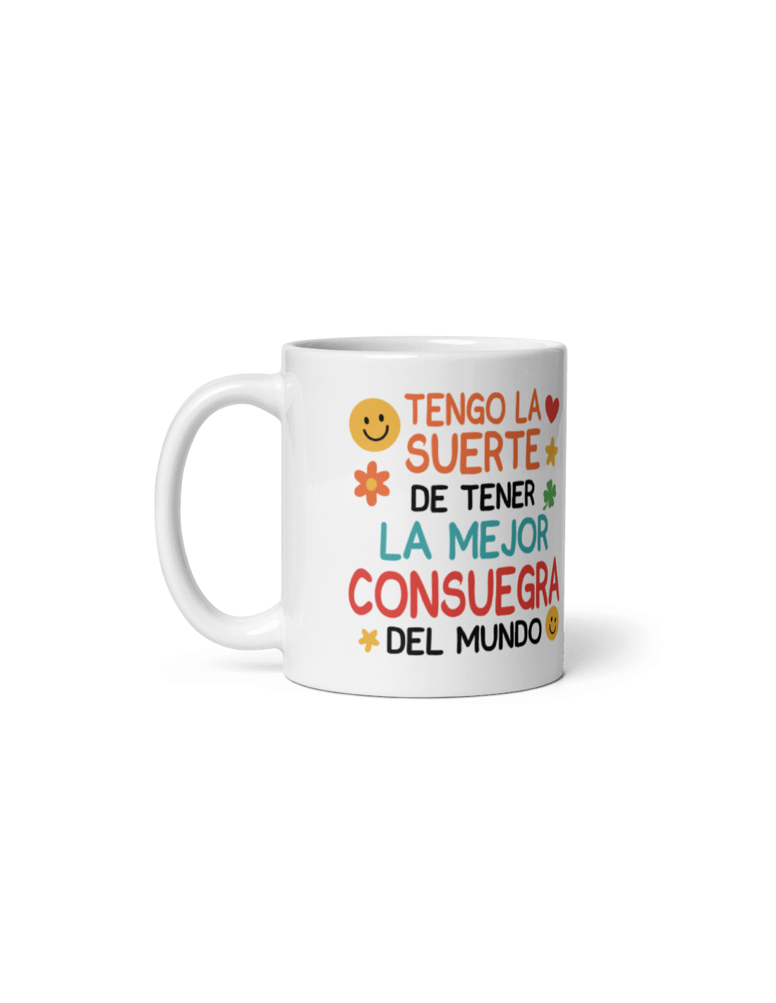 Original taza de porcelana decorada con el mensaje "Tengo la suerte de tener la mejor consuegra del mundo".