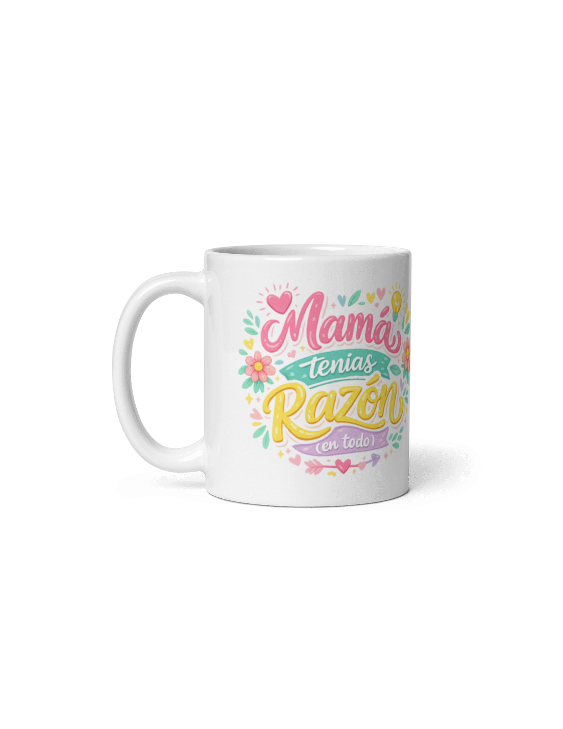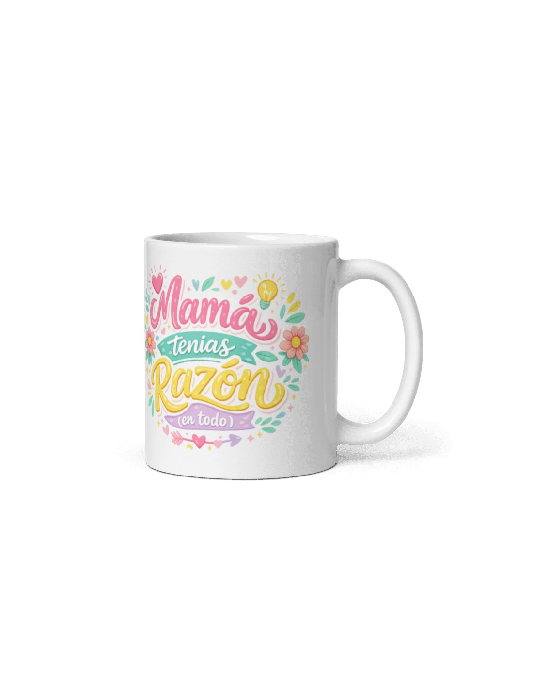 Original taza de porcelana blanca con asa, decorada con mensaje "Mamá tenías razón (en todo)".