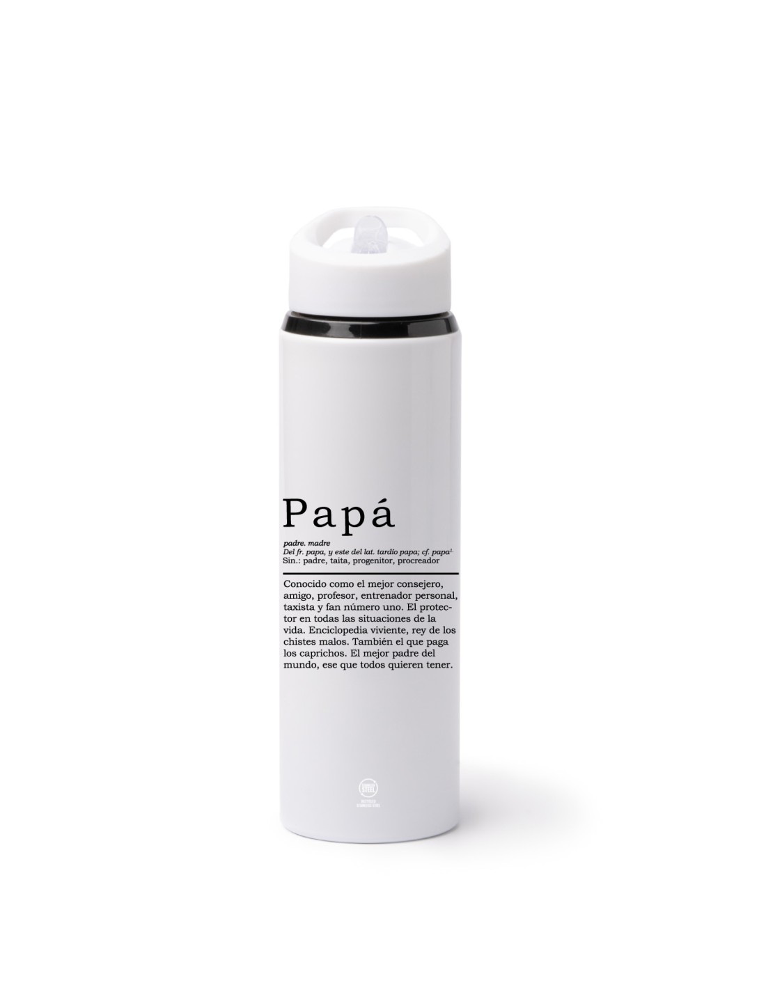 Original botella de acero inoxidable de 700 ml. decorada con una cariñosa definición de papá.