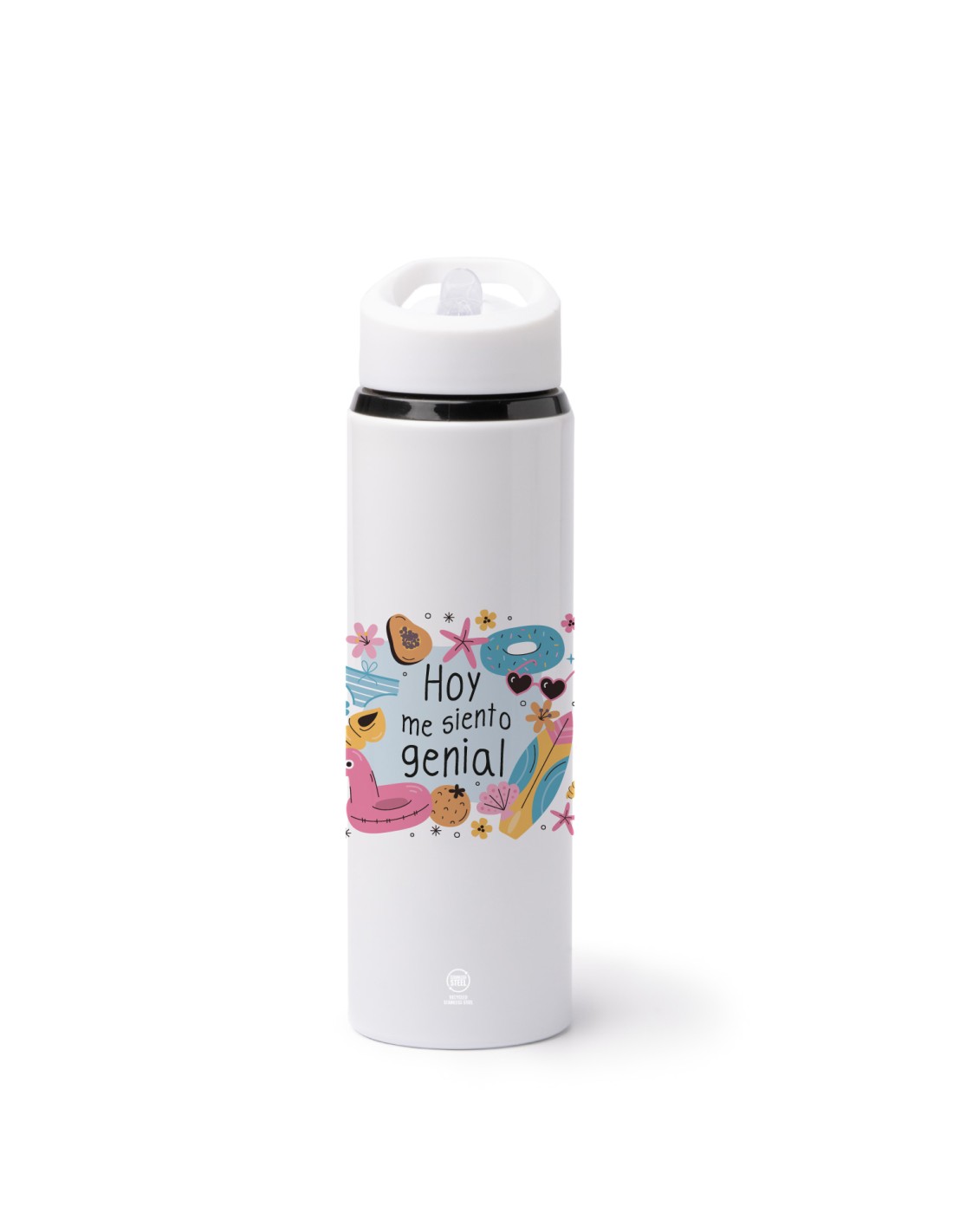Original botella de acero inoxidable de 700 ml. decorada con el mensaje "hoy me siento genial".
