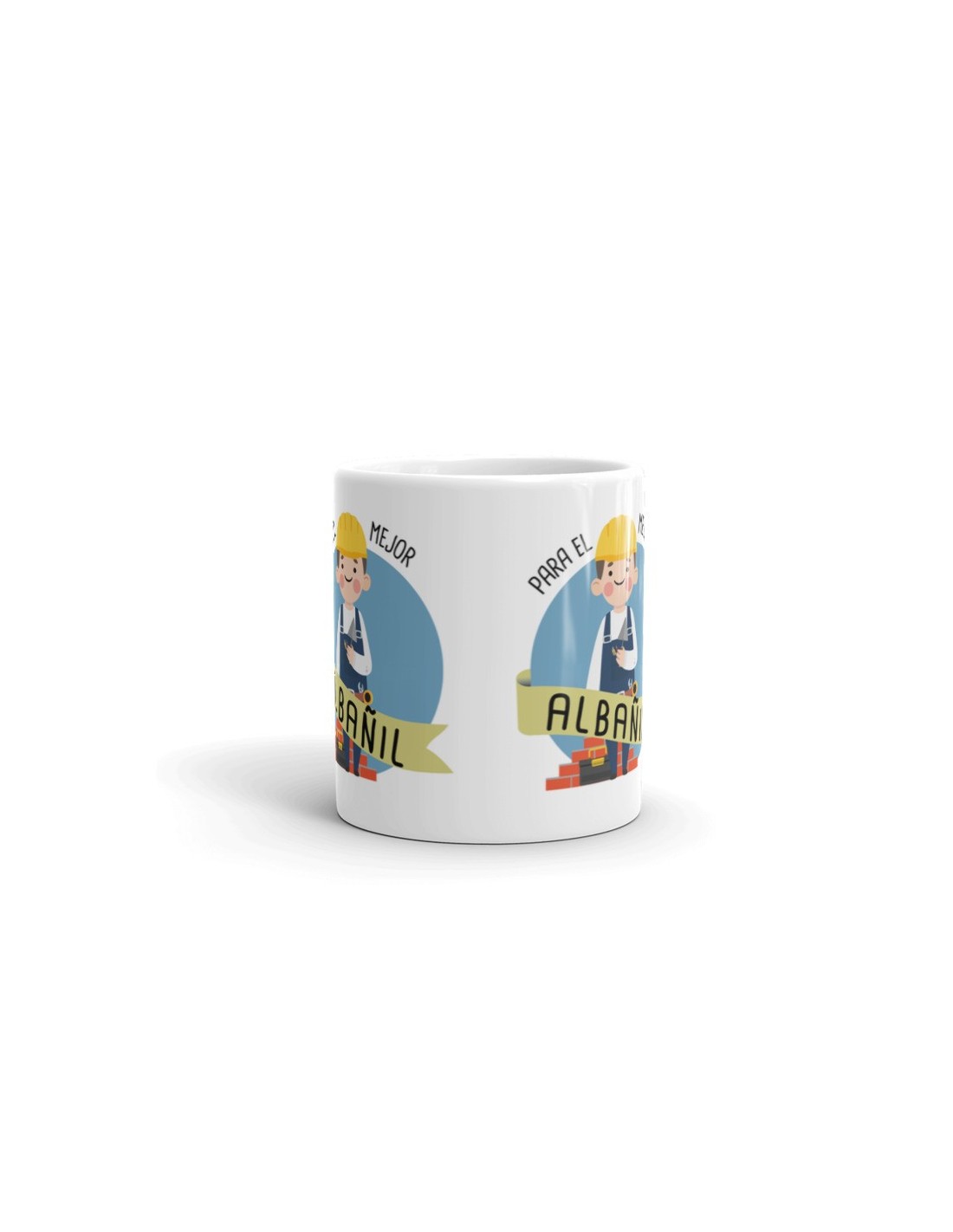 Original y simpática taza de porcelana decorada con el mensaje "Para el mejor albañil".