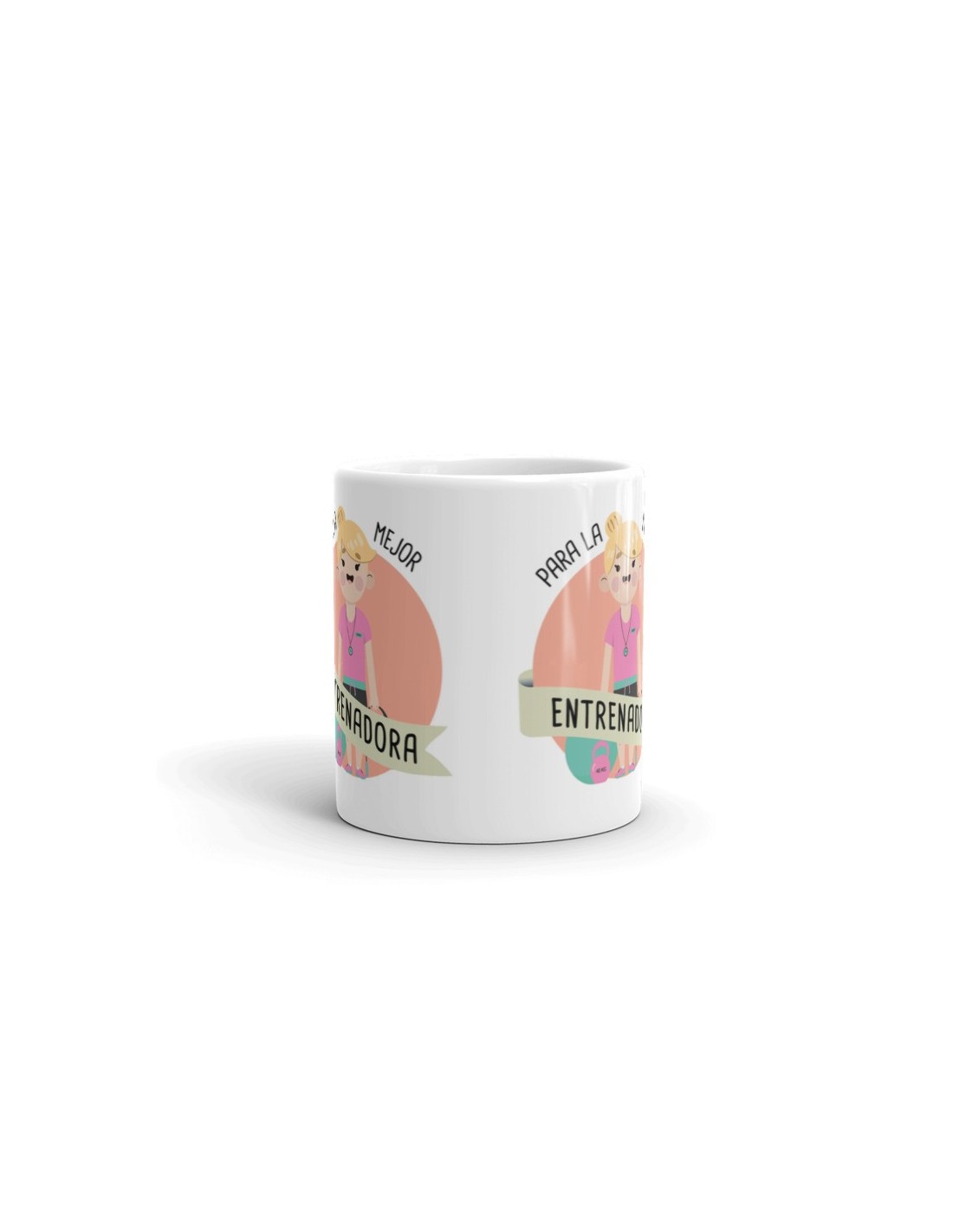 Original y simpática taza de porcelana decorada con el mensaje "Para la mejor entrenadora".