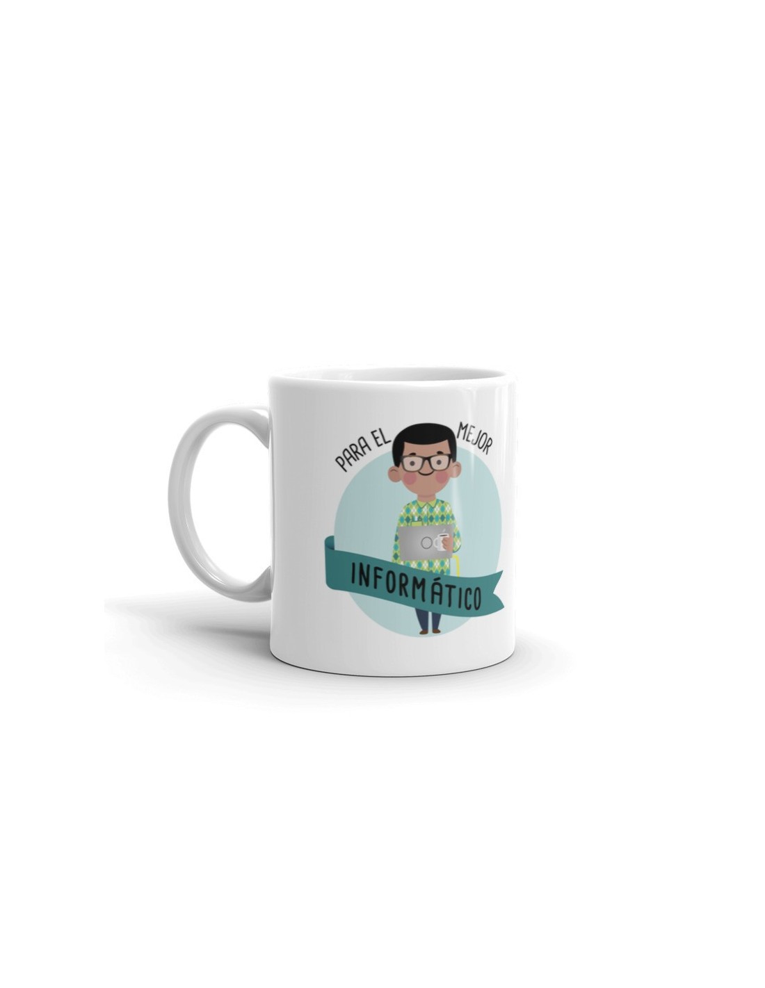 Original y simpática taza de porcelana decorada con el mensaje "Para el mejor informático".