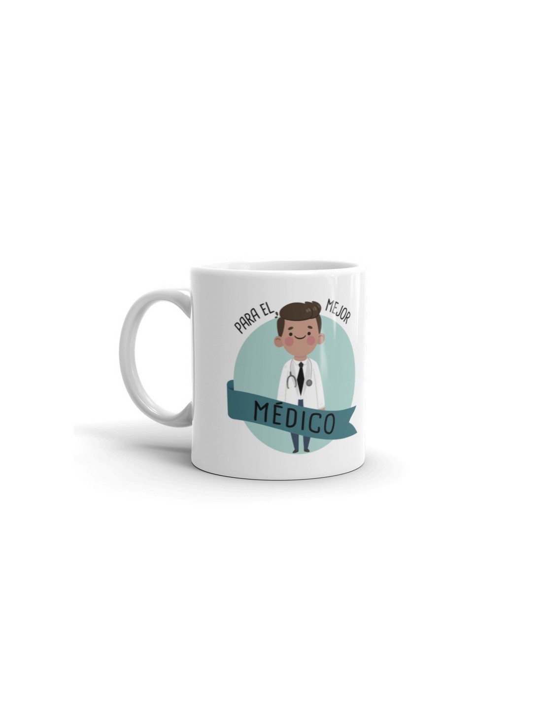 Original y simpática taza de porcelana decorada con el mensaje "Para el mejor médico".
