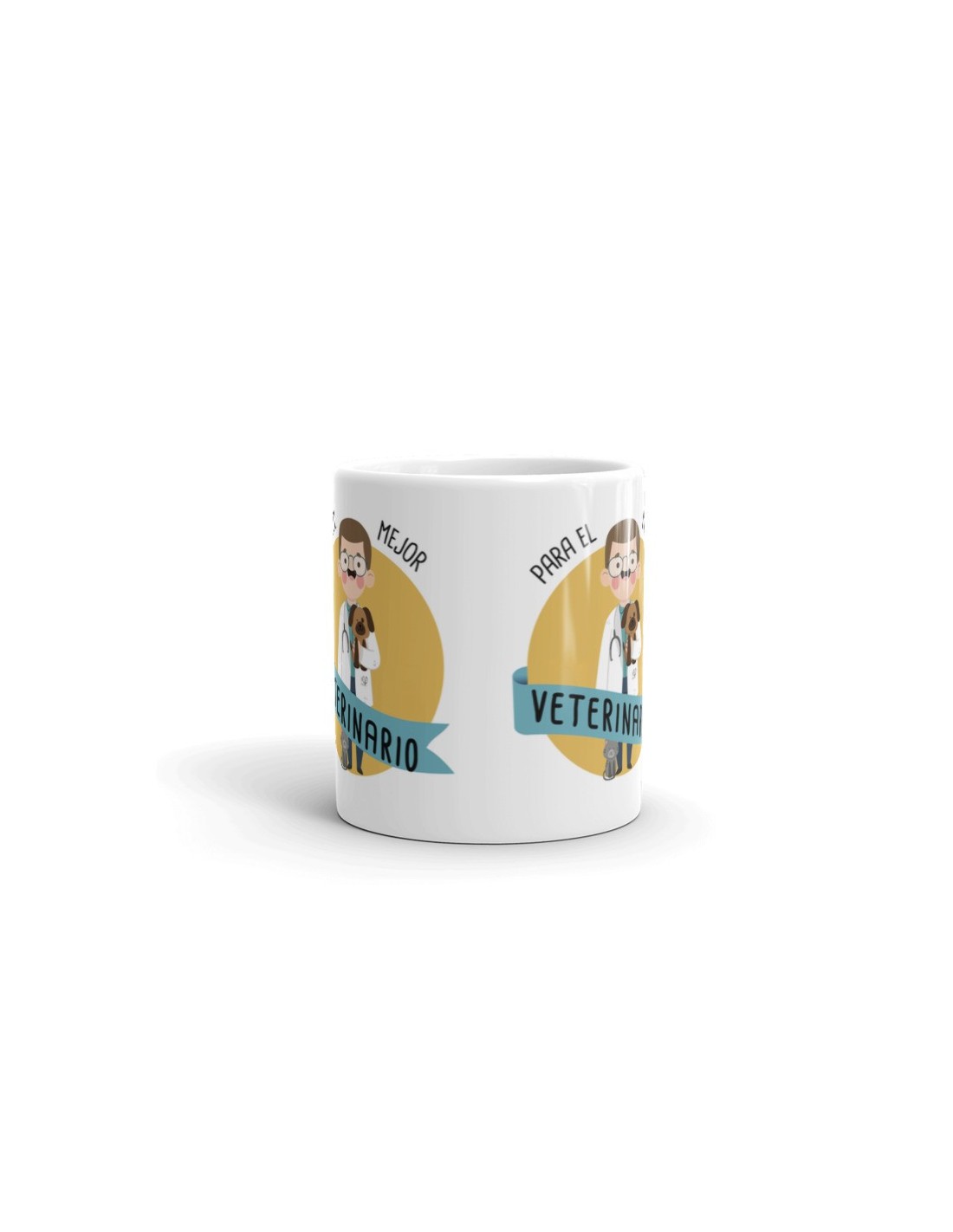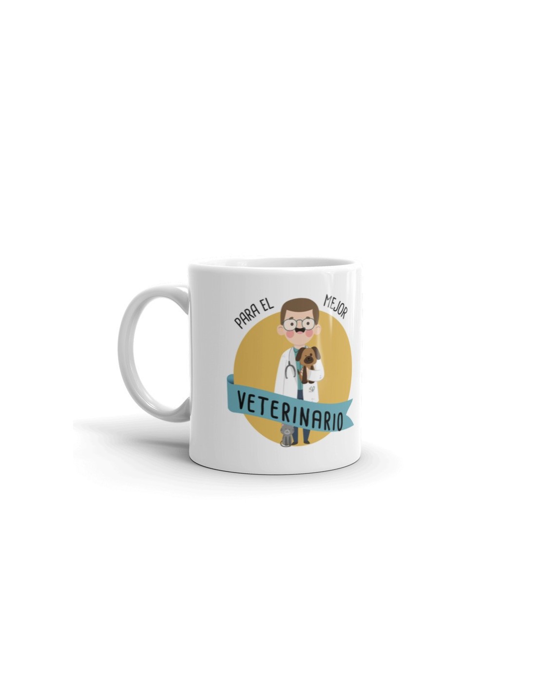 Original taza de porcelana blanca con asa, decorada con estilo retro, simulando un restaurante llamado "mamá".