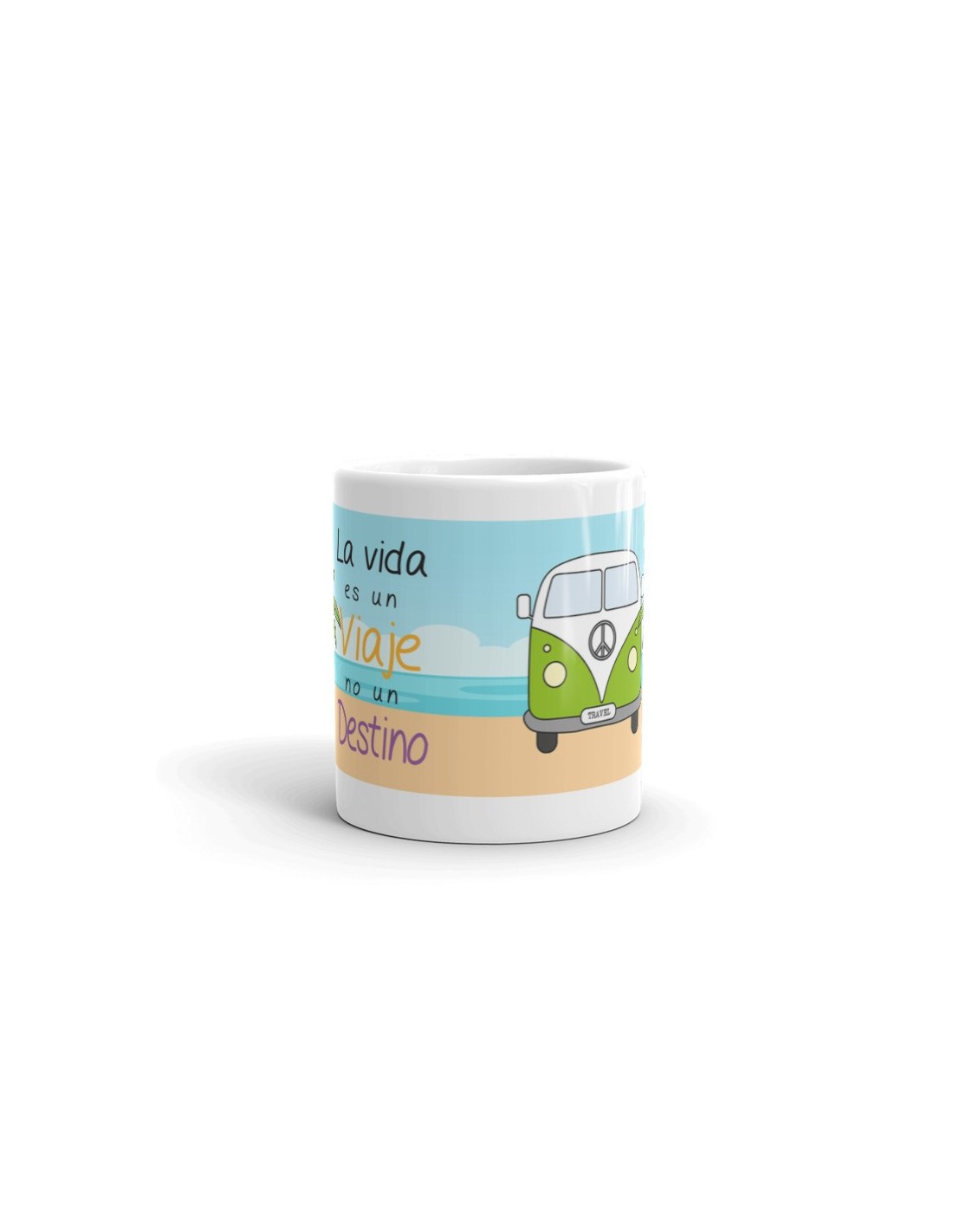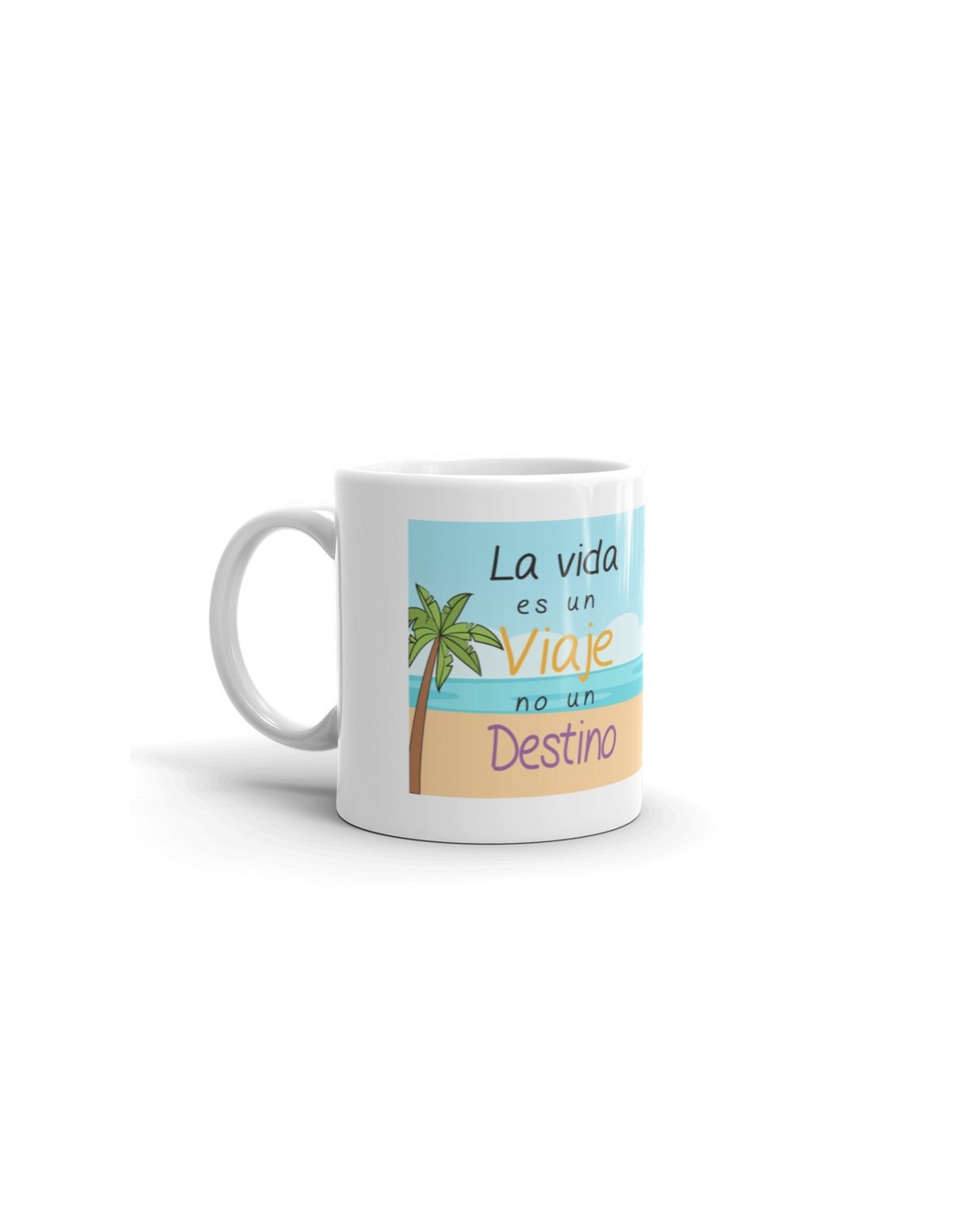 Original taza de porcelana decorada con el mensaje "La vida es un viaje no un destino".
