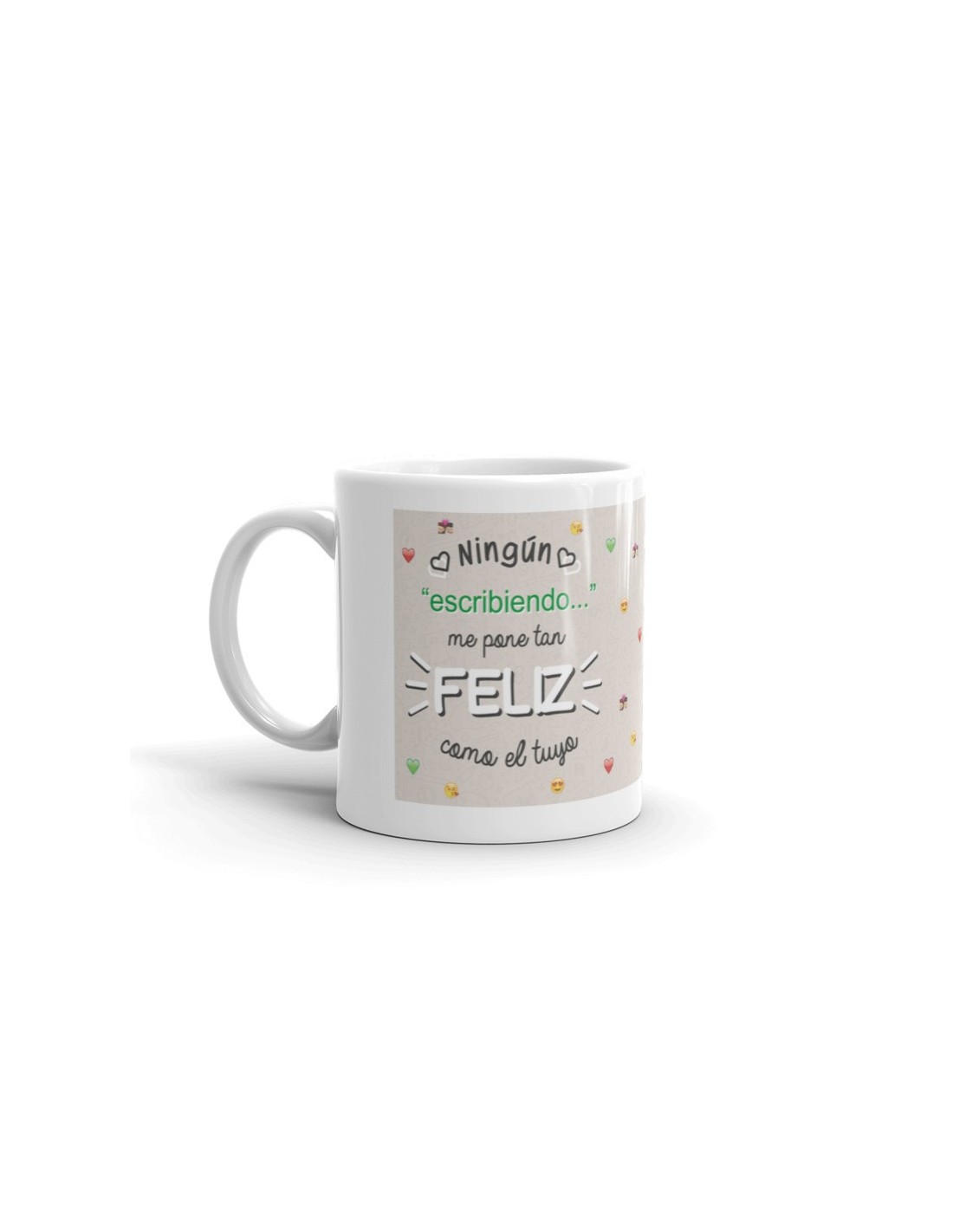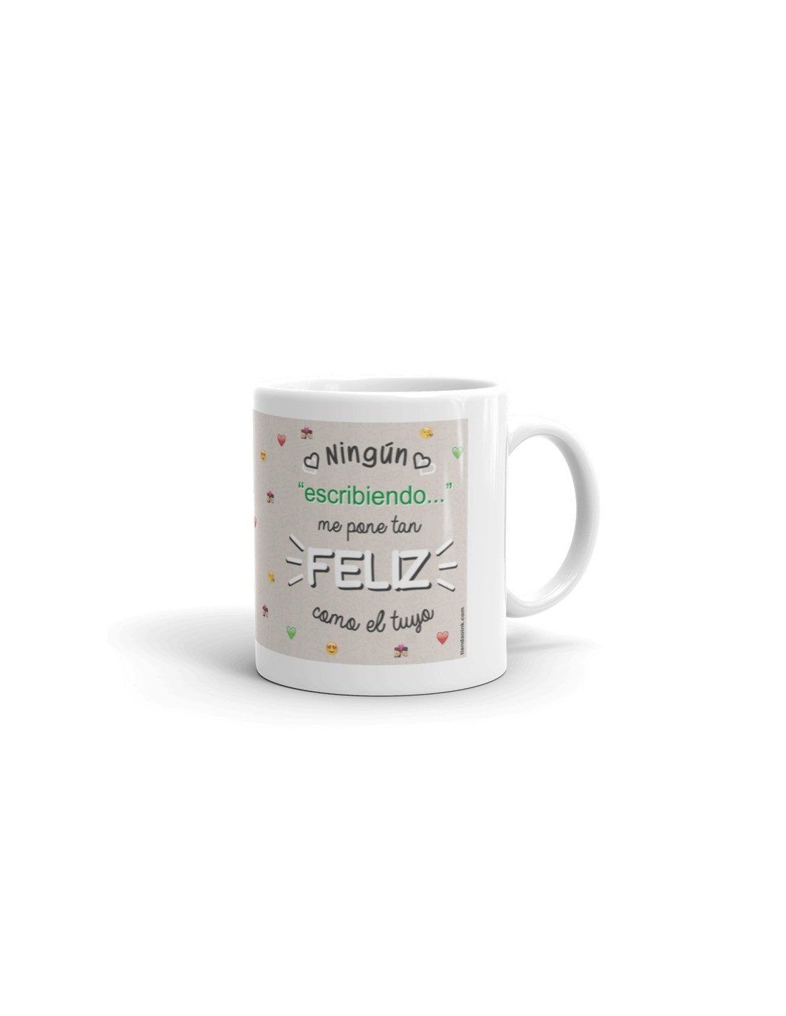 Taza de porcelana blanca con asa decorada con el mensaje "Lo nuestro tiene mucha química".