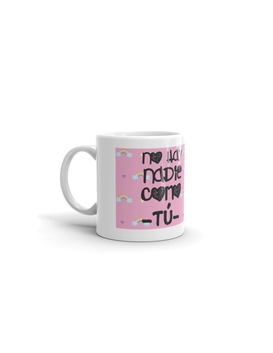 Original taza de porcelana decorada con el mensaje "No hay nadie como tu" y el dibujo de un unicornio.