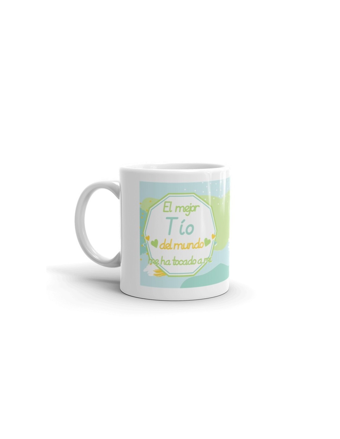 Divertida taza de porcelana decorada con el mensaje "Todo es posible si lo intentas" y una casa volando con globos.