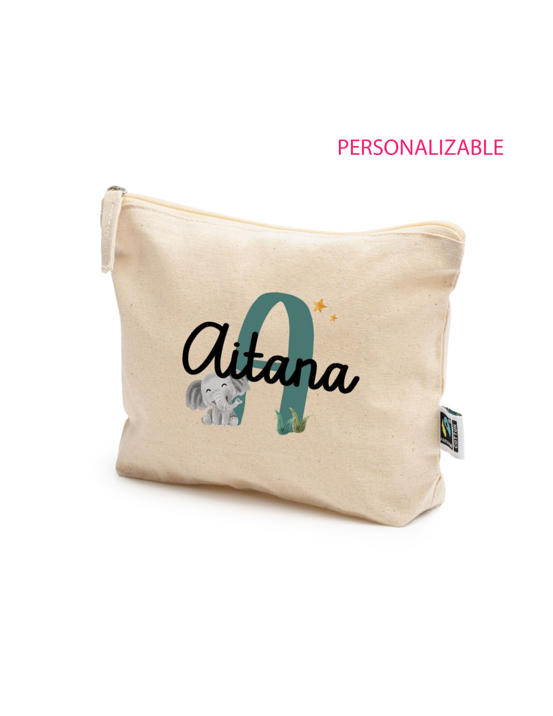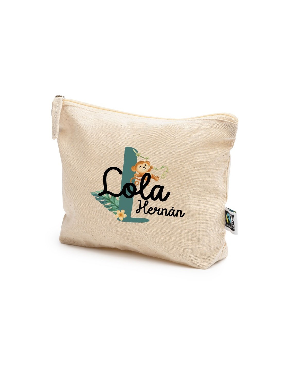 Original neceser personalizado con nombre e inicial, perfecta para la vuelta al cole. Puedes añadir un apellido de manera opcional.